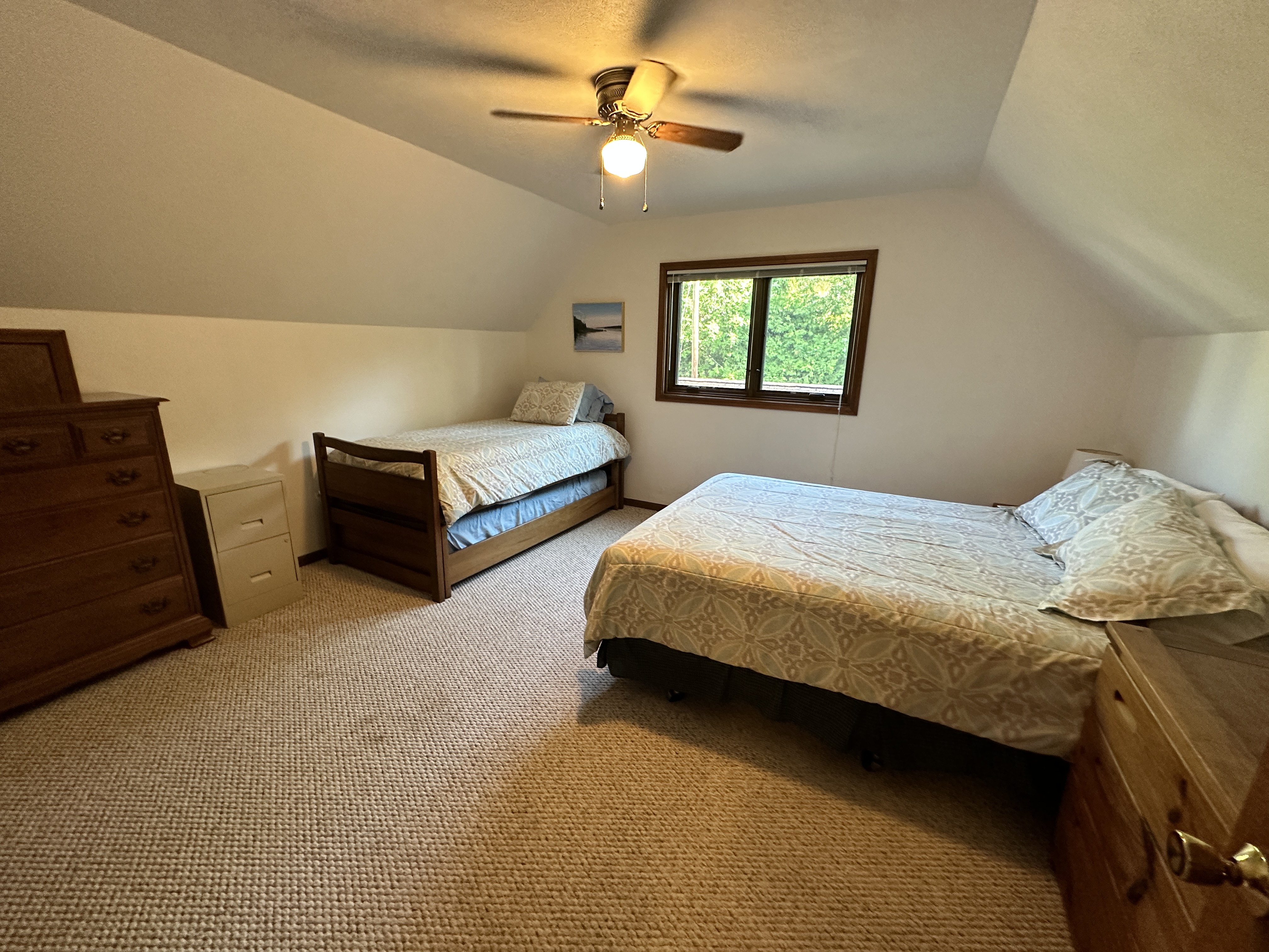 The home features 3 bedrooms and 1.5 bathrooms; one bedroom is located on the main level with a bunk bed, the master upstairs has a king bed, and the third bedroom upstairs has a queen along with a twin trundle bed. The cottage is cozy and has all the amenities you would need for vacation: Wi-Fi, cable, appliances, propane grill, outdoor fire pit, and a boat hoist (no A/C). This is the perfect cabin for your Walloon Lake vacation without paying the typical excessive rental rates. This home is available beginning Memorial weekend through the end of October. Book this home now for your next Northern Michigan experience!