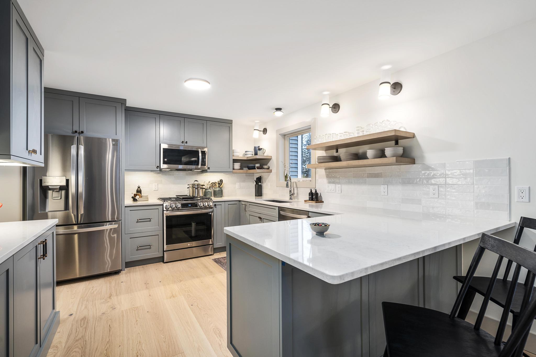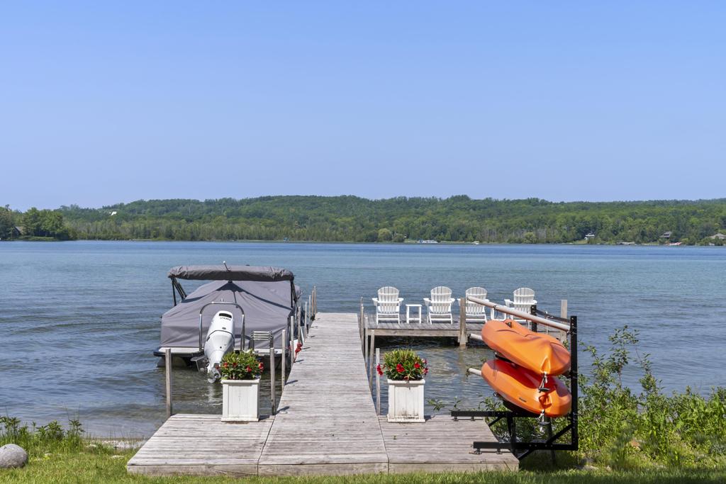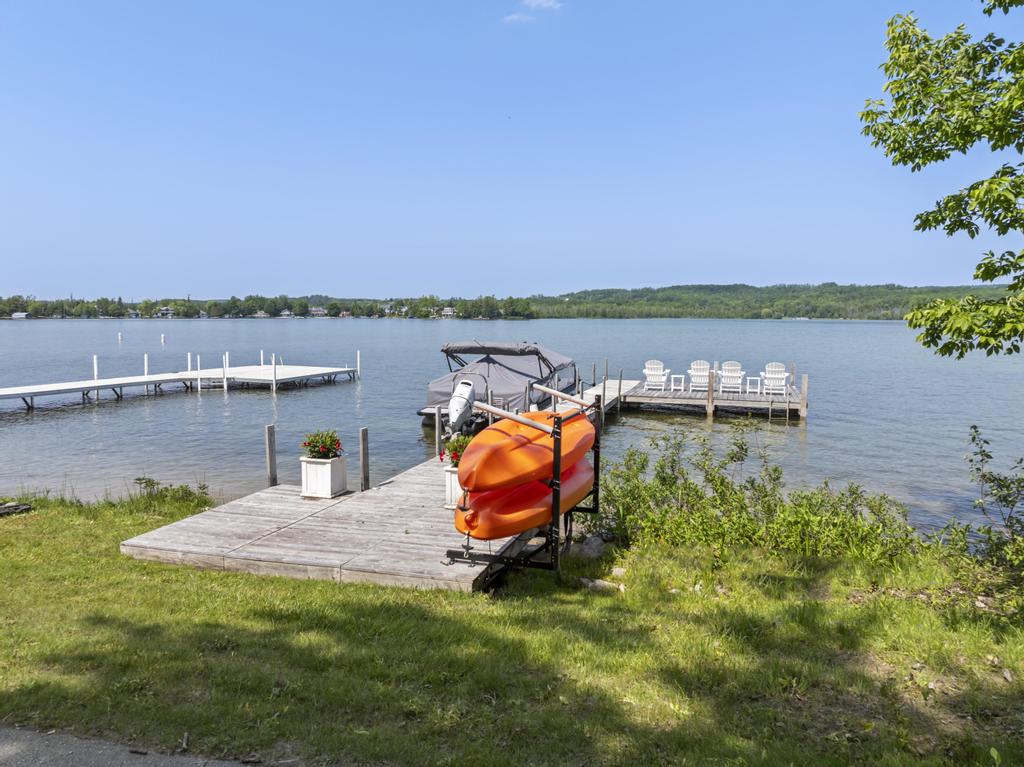 This home features 4 bedrooms and 3.5 bathrooms; the modernized kitchen provides all of the essentials for cooking and entertaining. The master suite upstairs is spacious with large windows showcasing unbeatable lake views and an attached en suite perfectly laid out with a walk-in tiled shower. The living room is appealingly comfortable with a fireplace, tasteful decorations and more Walloon views. The kitchen and living room flow into each other with an open concept and has doors that lead out to the front patio.