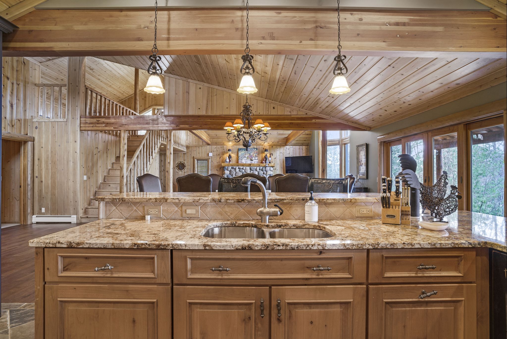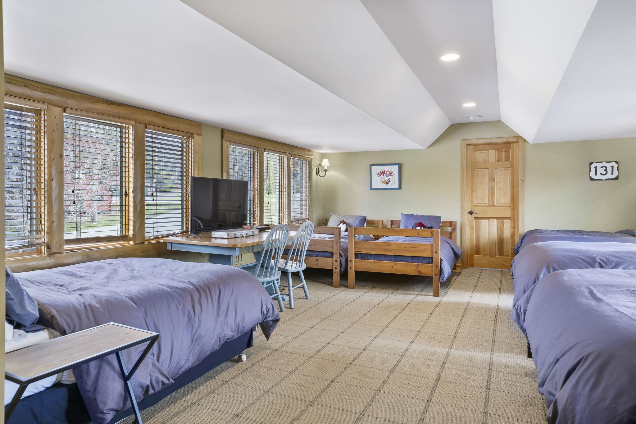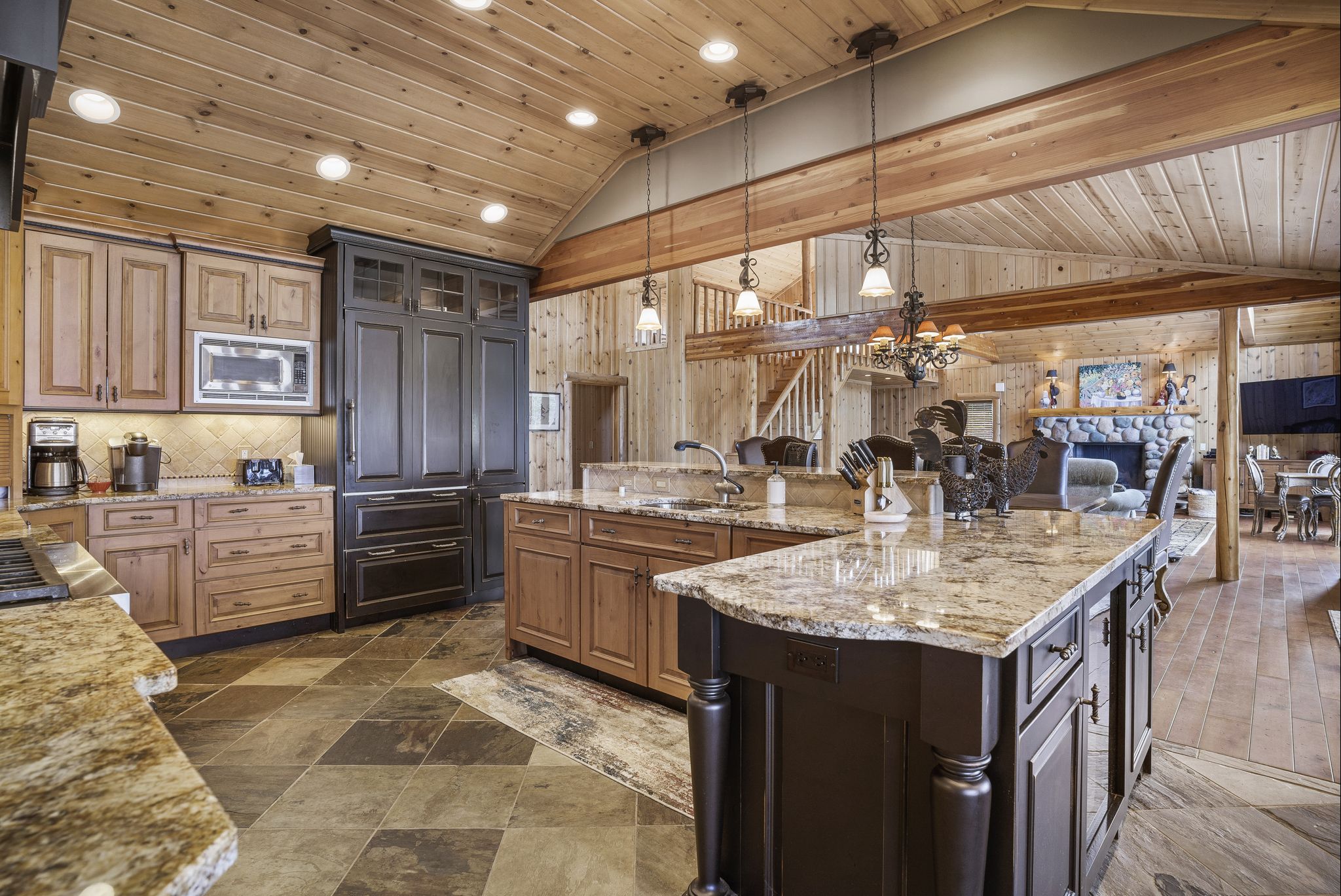 The home has a large open first floor featuring a chef's kitchen with granite counter tops, slate flooring, a WOLF oven/cook top, Sub-Zero refrigerator/freezer and a wine refrigerator. It is fully equipped with a new coffee maker and countertop convection oven/airfryer. There are three private bedrooms downstairs (two with en-suites) that include two king beds and one queen bed. The dormer area has an extensive sleeping area including four queen beds, four twin beds one double bed and a full bath. There is plenty of dining room seating for gatherings around the large dining table, breakfast nook and bar area. There is also a game table downstairs and in the loft upstairs above the living room, perfect for card or board games.