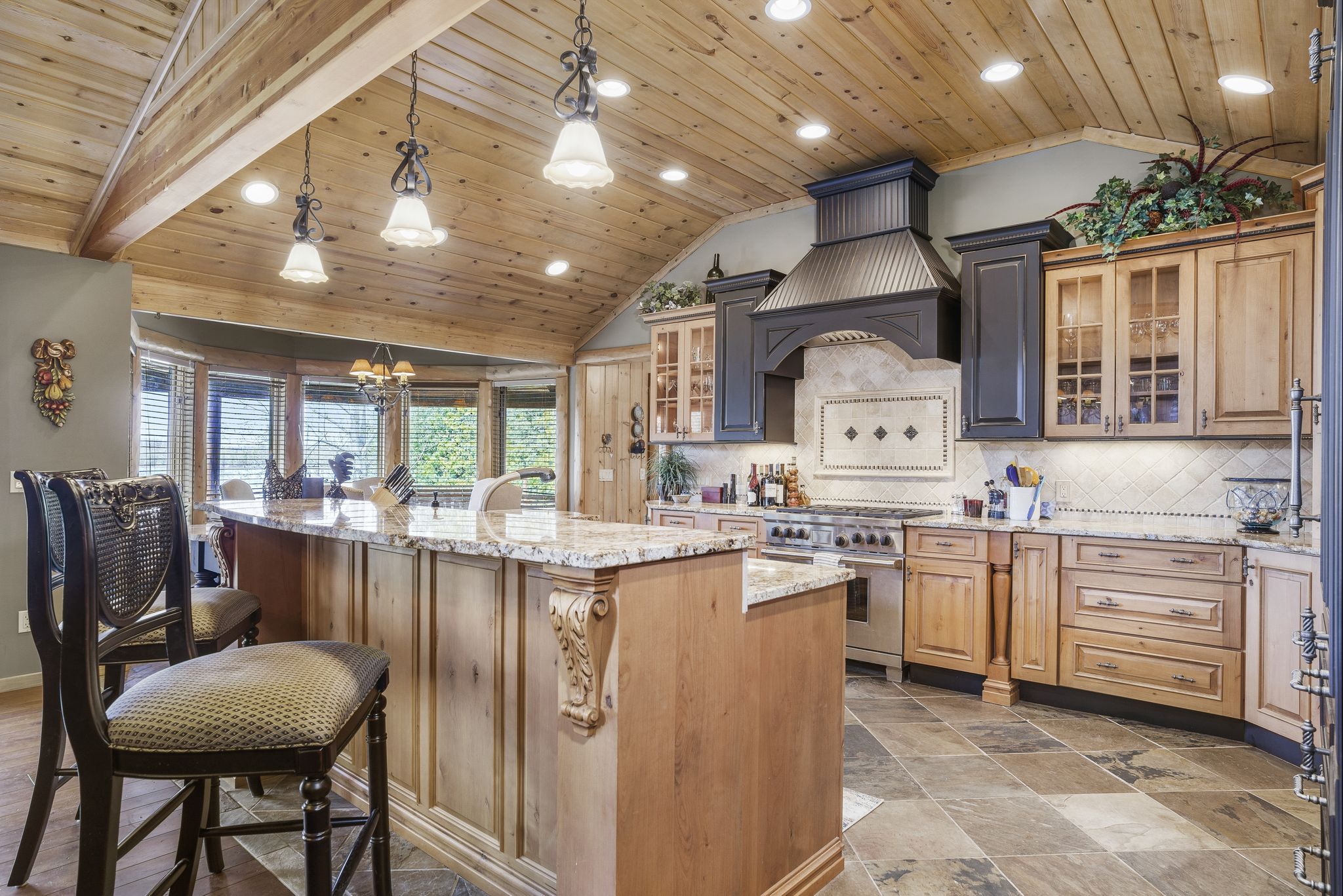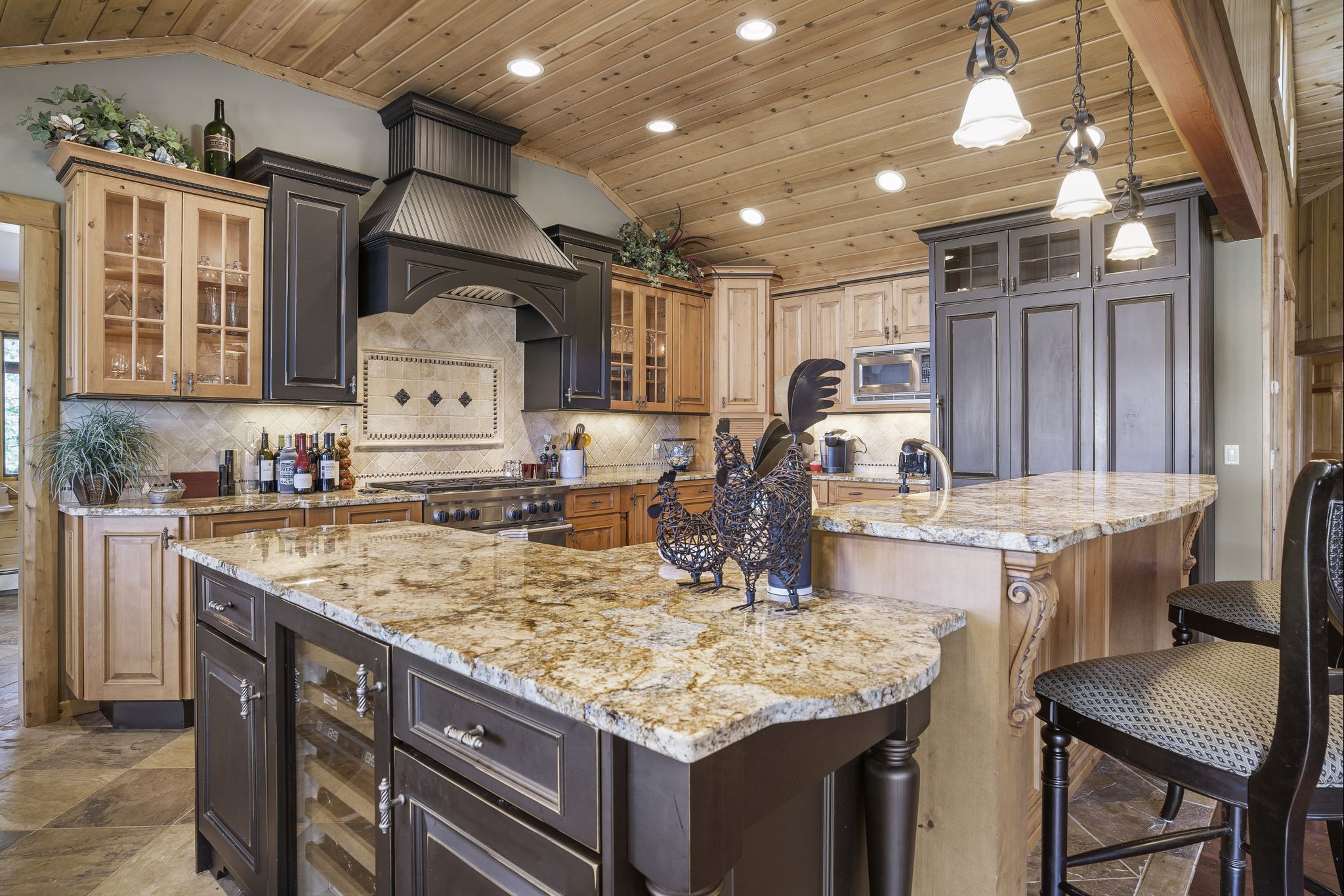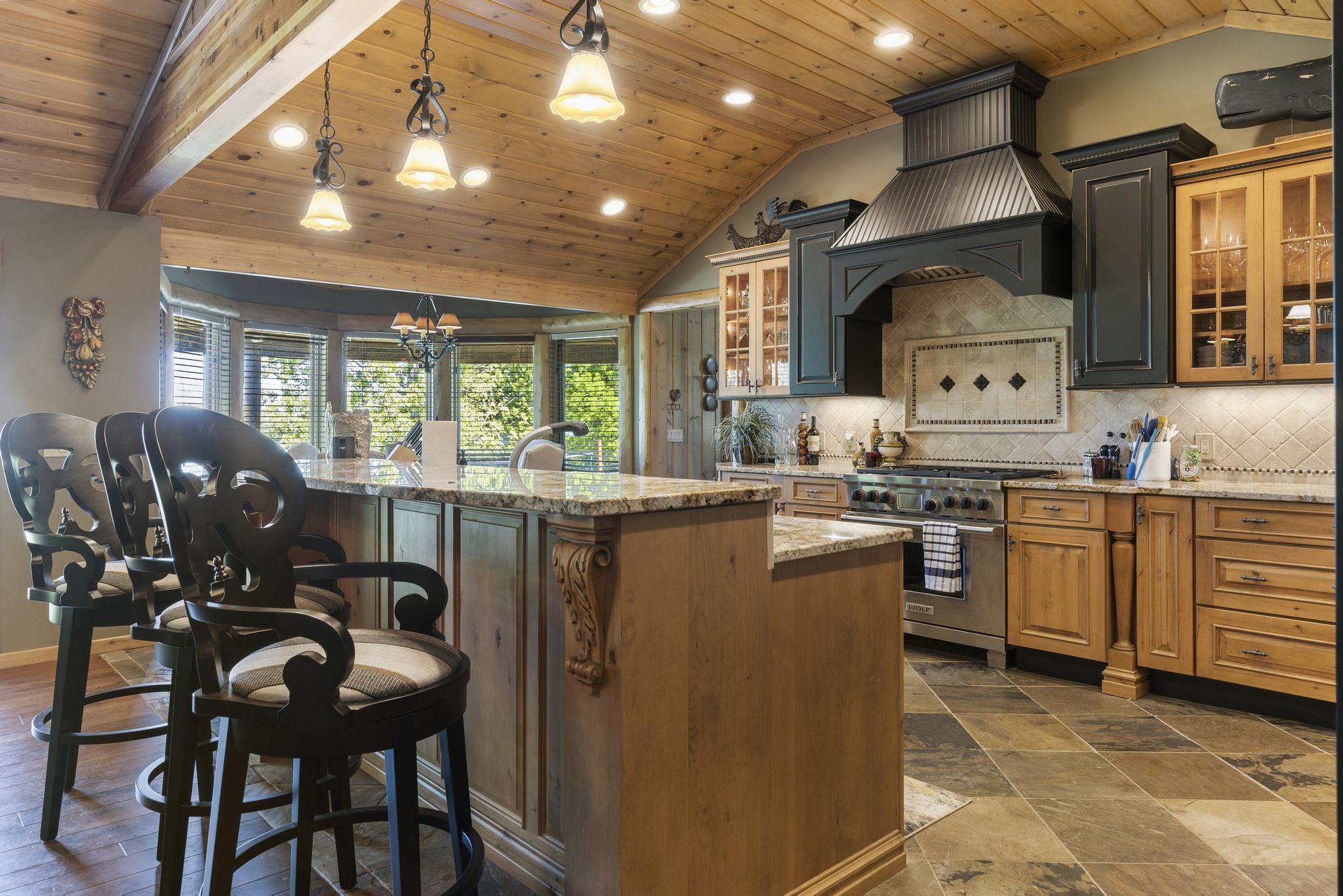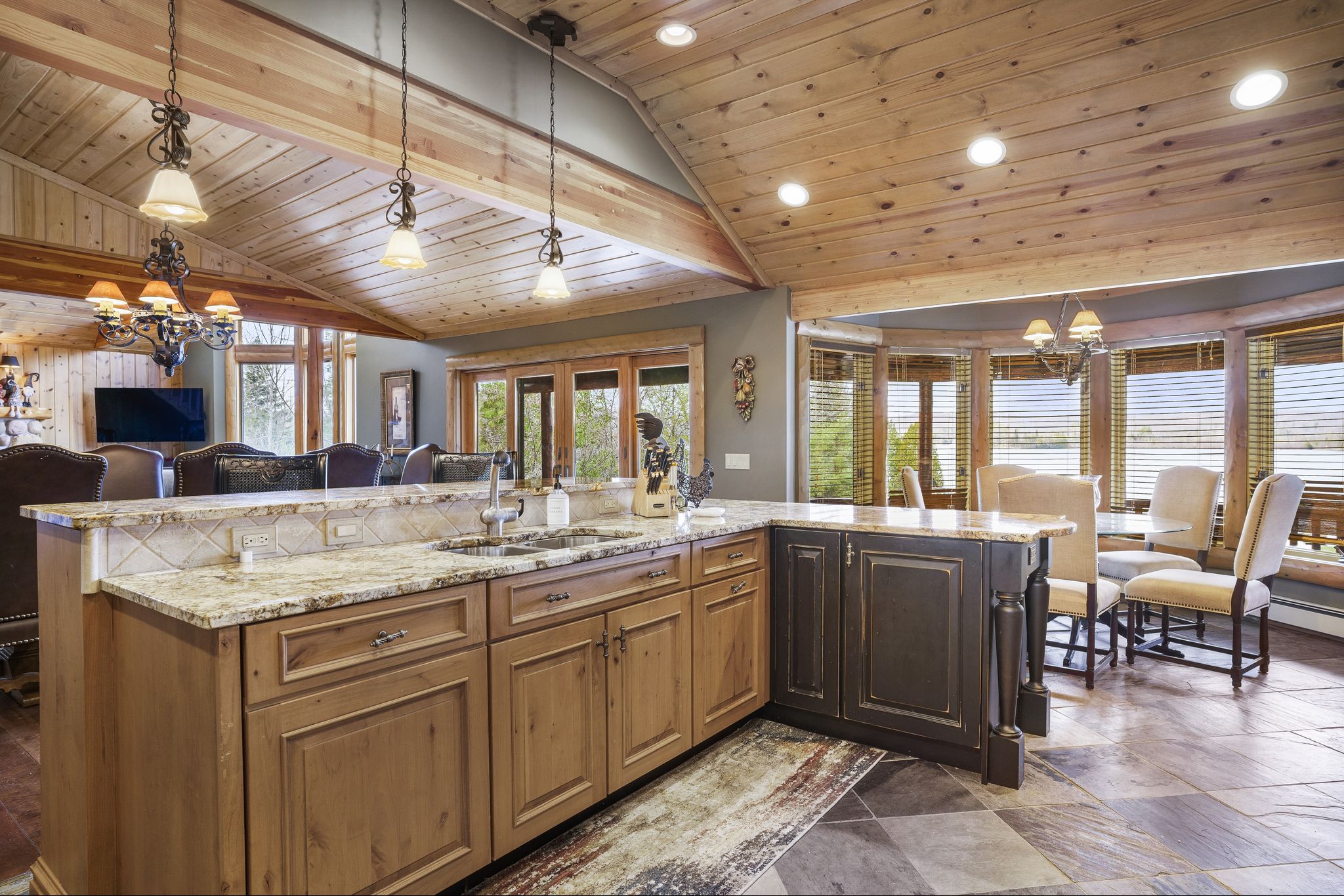 The home has a large open first floor featuring a chef's kitchen with granite counter tops, slate flooring, a WOLF oven/cook top, Sub-Zero refrigerator/freezer and a wine refrigerator. It is fully equipped with a new coffee maker and countertop convection oven/airfryer. There are three private bedrooms downstairs (two with en-suites) that include two king beds and one queen bed. The dormer area has an extensive sleeping area including four queen beds, four twin beds one double bed and a full bath. There is plenty of dining room seating for gatherings around the large dining table, breakfast nook and bar area. There is also a game table downstairs and in the loft upstairs above the living room, perfect for card or board games.