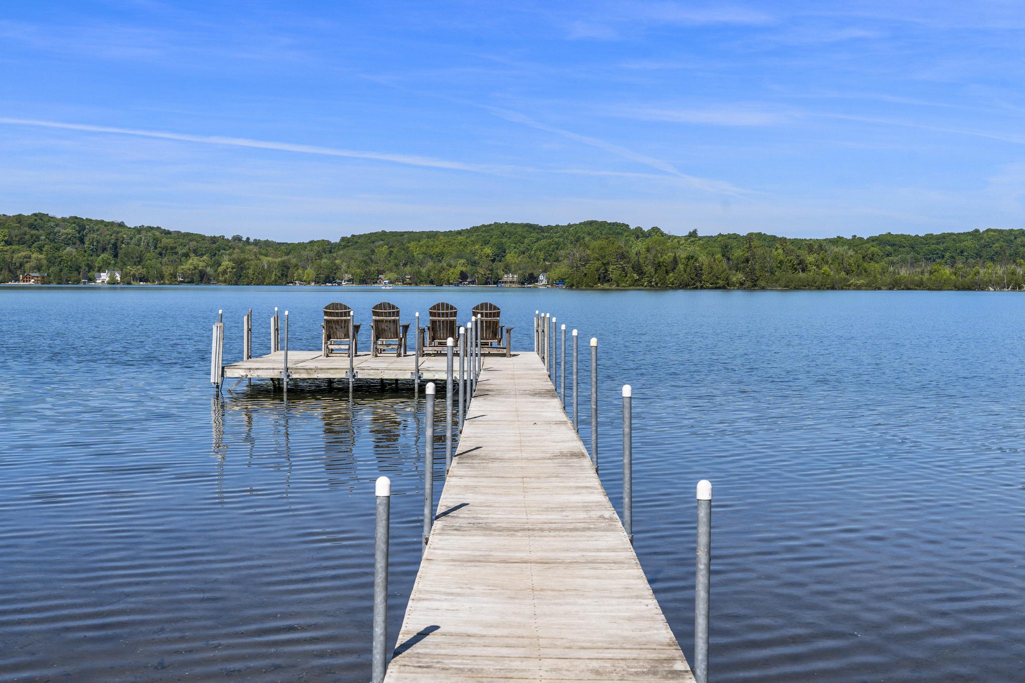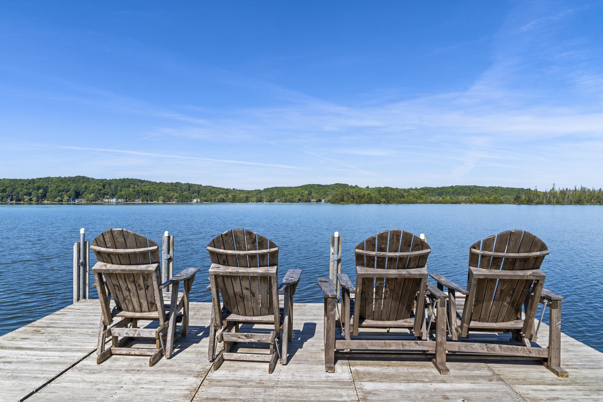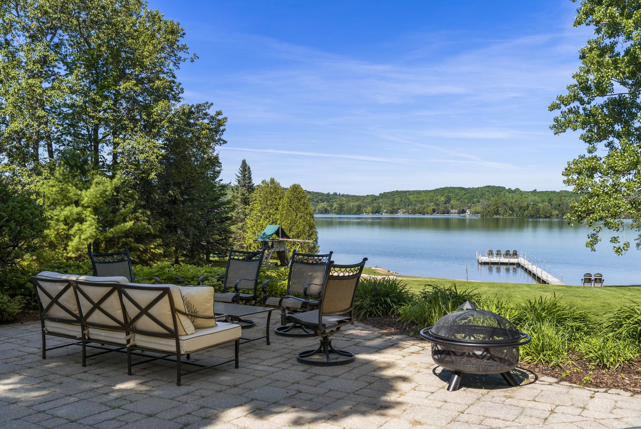 The crystal clear blue water of Walloon showcases gorgeous sunsets off of the expansive patio and the floor to ceiling windows allow for stunning lake views and the beautifully manicured landscape. The outdoor patio has multiple sitting areas, new furniture, and fire pit. Tie your boat off of the large dock and enjoy all that summers on Walloon have to offer. Guests can also enjoy the home's volleyball, badminton, ping pong, and kayaks.