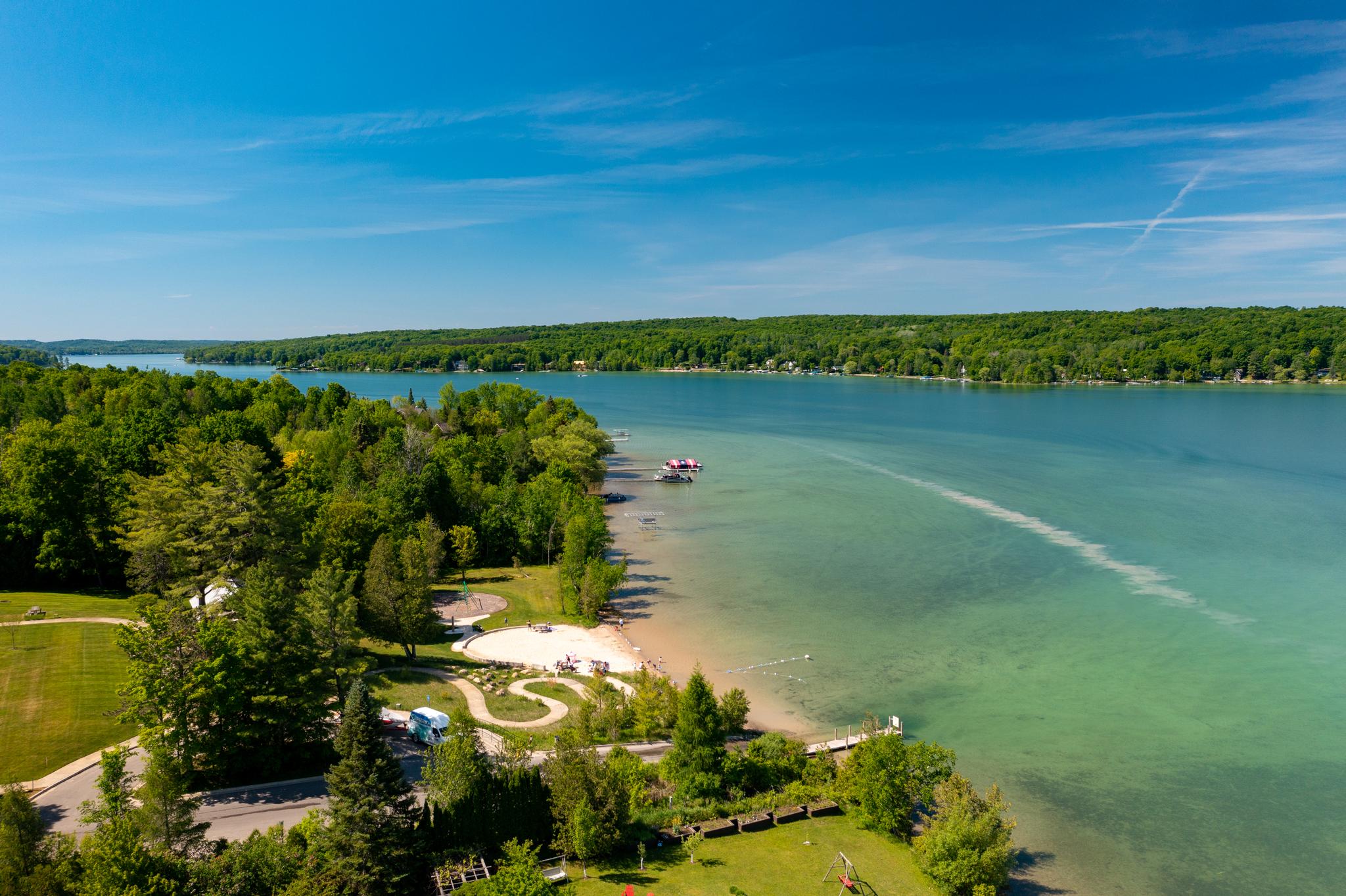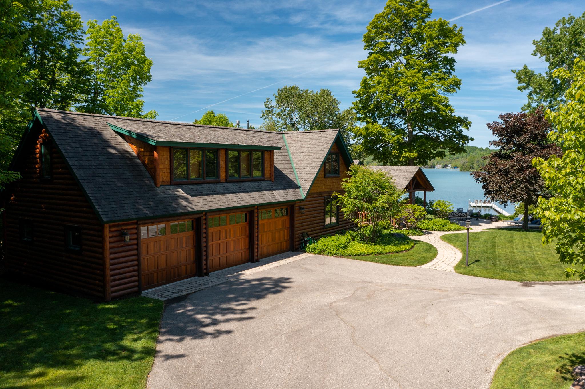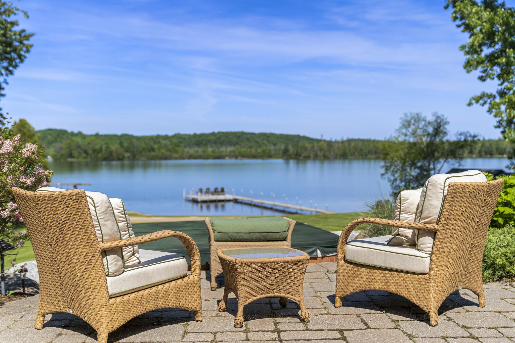 The crystal clear blue water of Walloon showcases gorgeous sunsets off of the expansive patio and the floor to ceiling windows allow for stunning lake views and the beautifully manicured landscape. The outdoor patio has multiple sitting areas, new furniture, and fire pit. Tie your boat off of the large dock and enjoy all that summers on Walloon have to offer. Guests can also enjoy the home's volleyball, badminton, ping pong, and kayaks.
