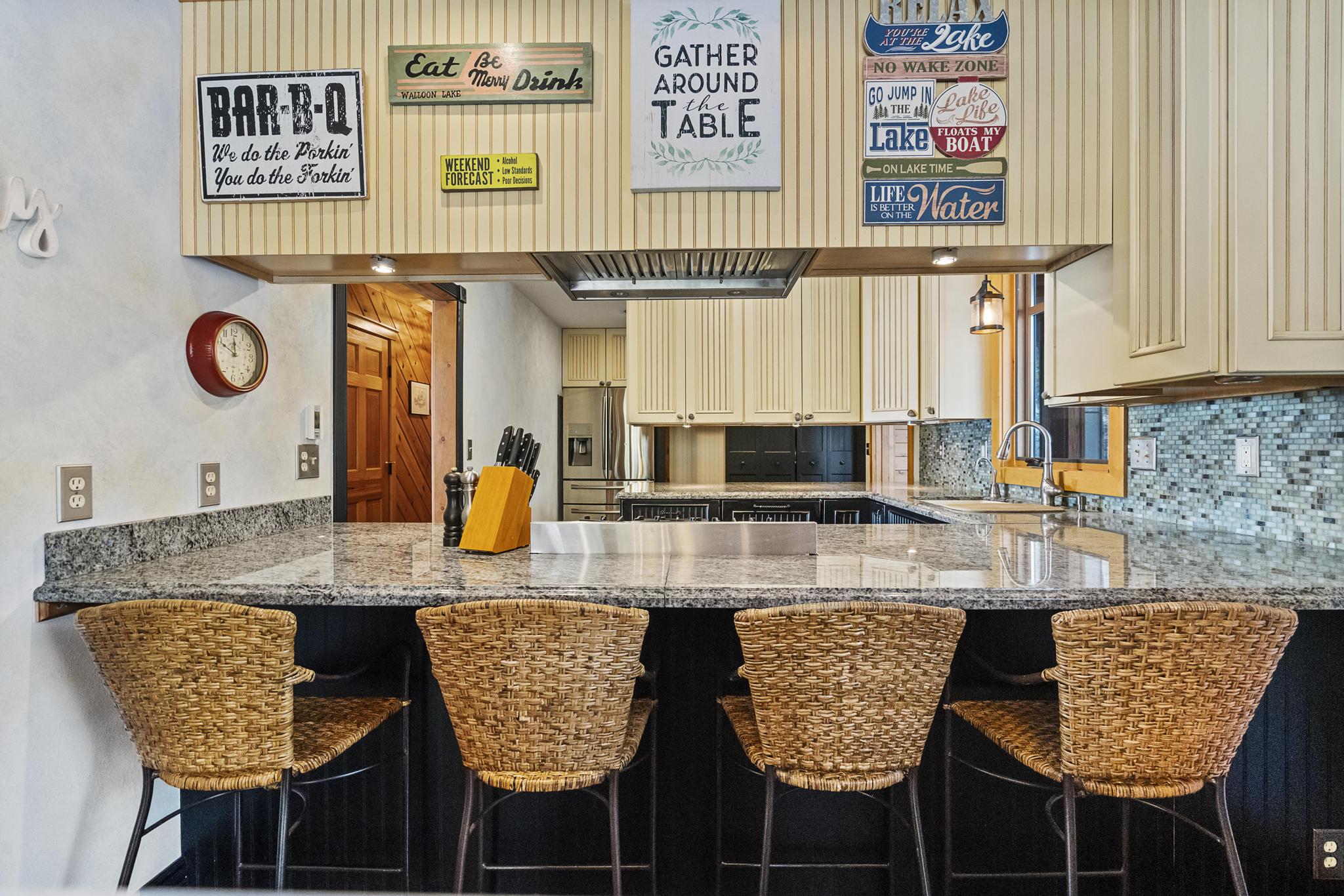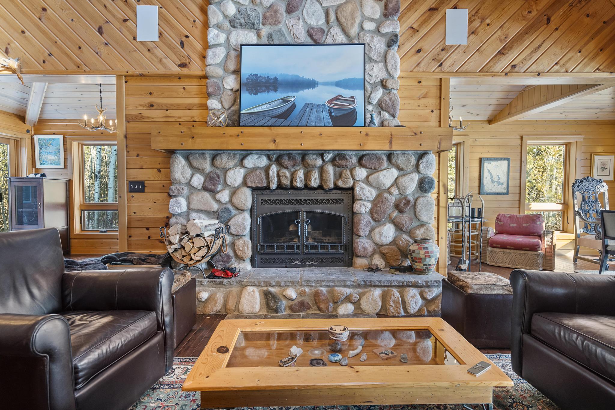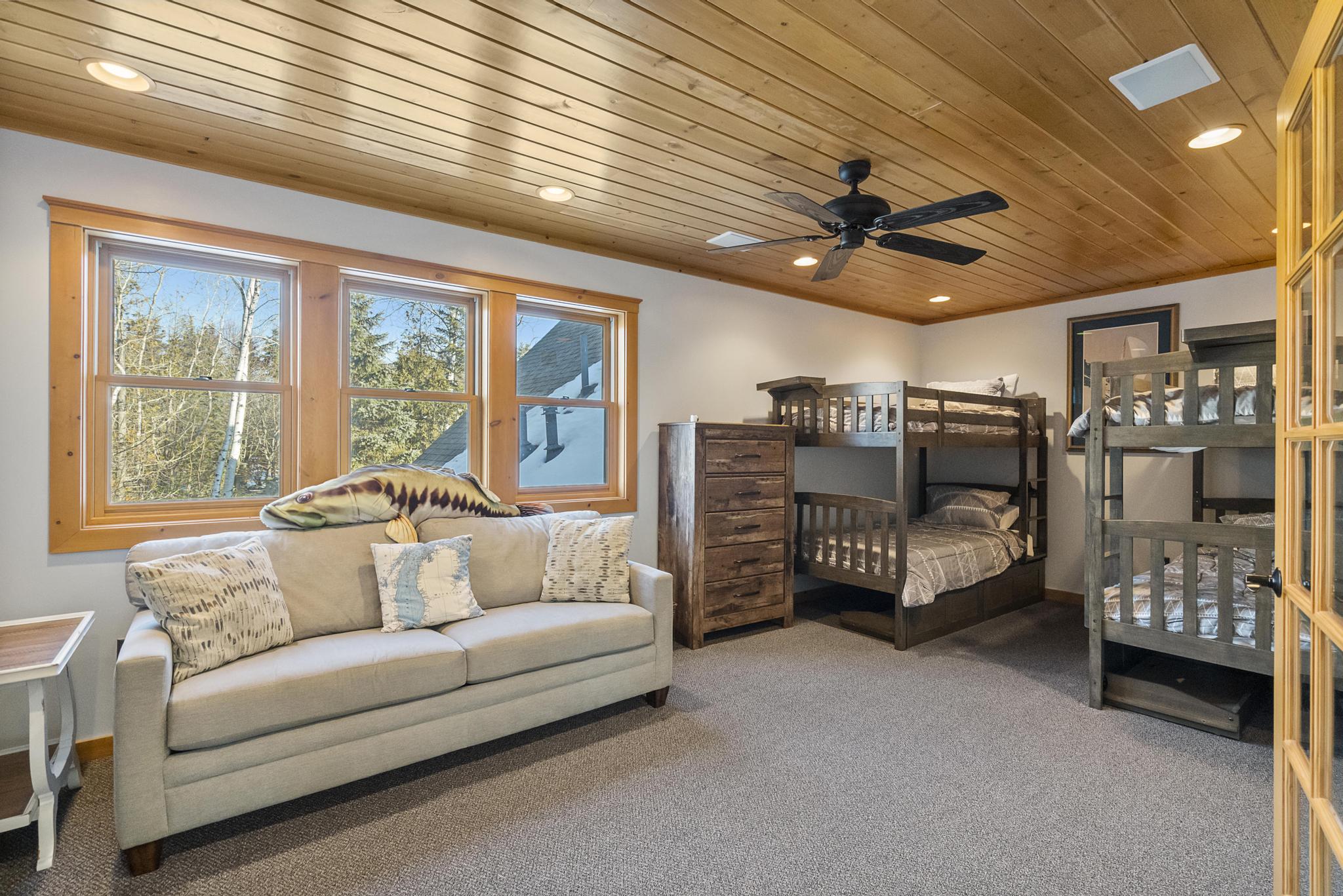 For the summer months, cool down with two central air conditioning units. Other features include granite counter tops, indoor fireplaces, top of the line fixtures, gourmet kitchen appliances, among other details. You couldn't ask for a better location- Petoskey is only a ten minute drive while Harbor Springs or Charlevoix is between 20-30 minutes away. Book this home now for your next Northern Michigan experience!