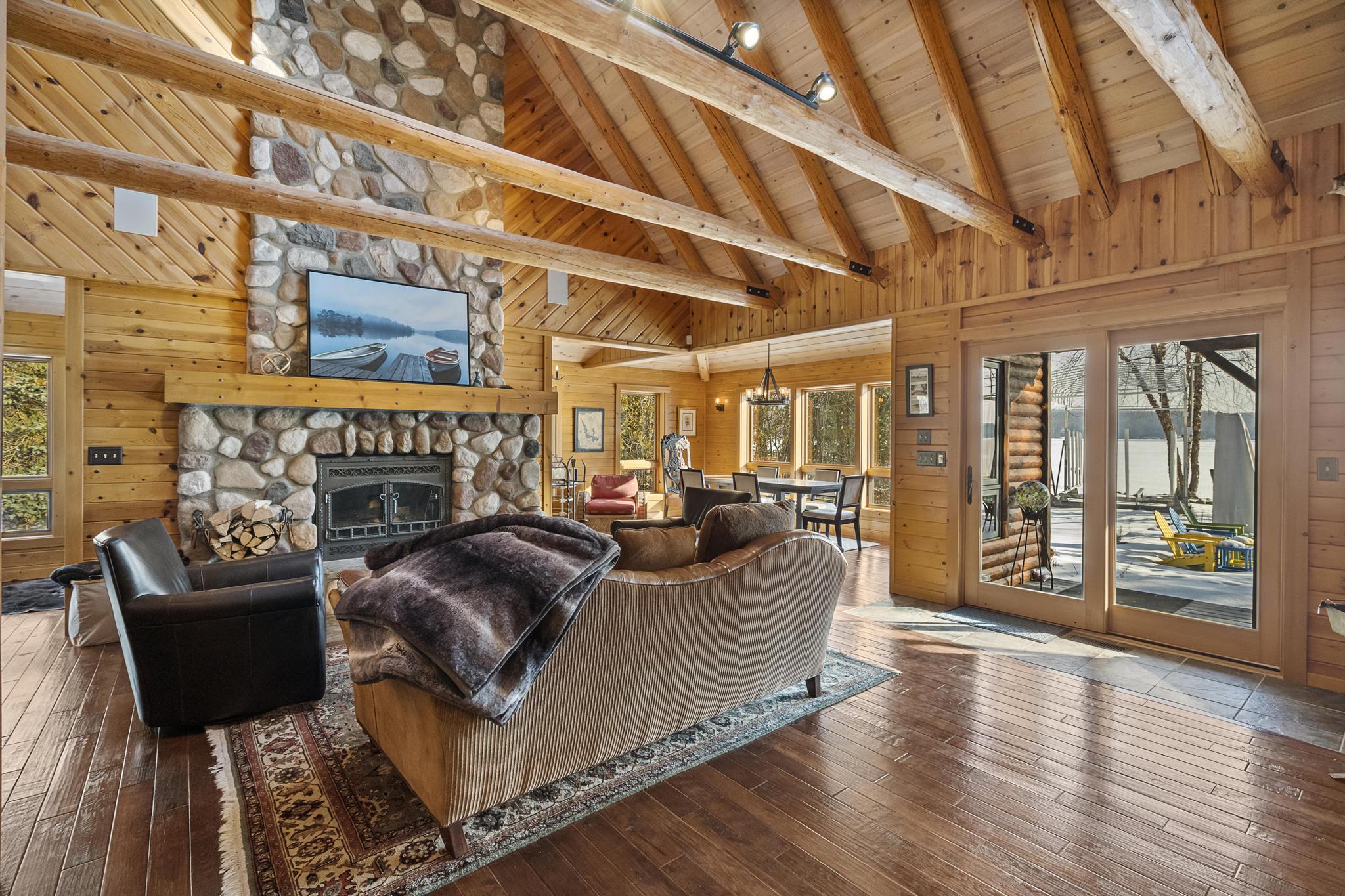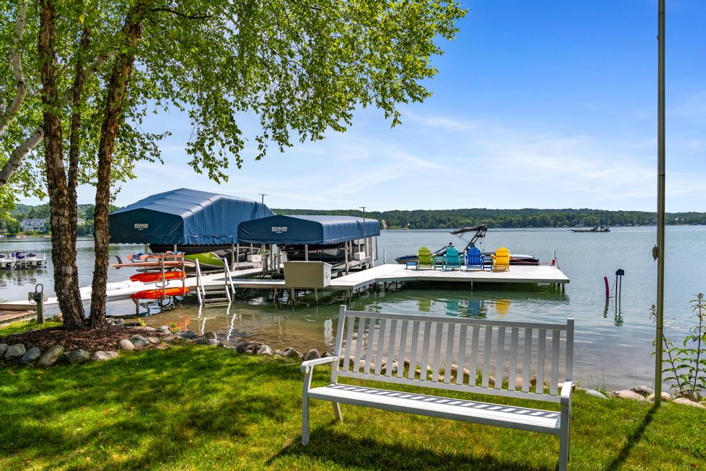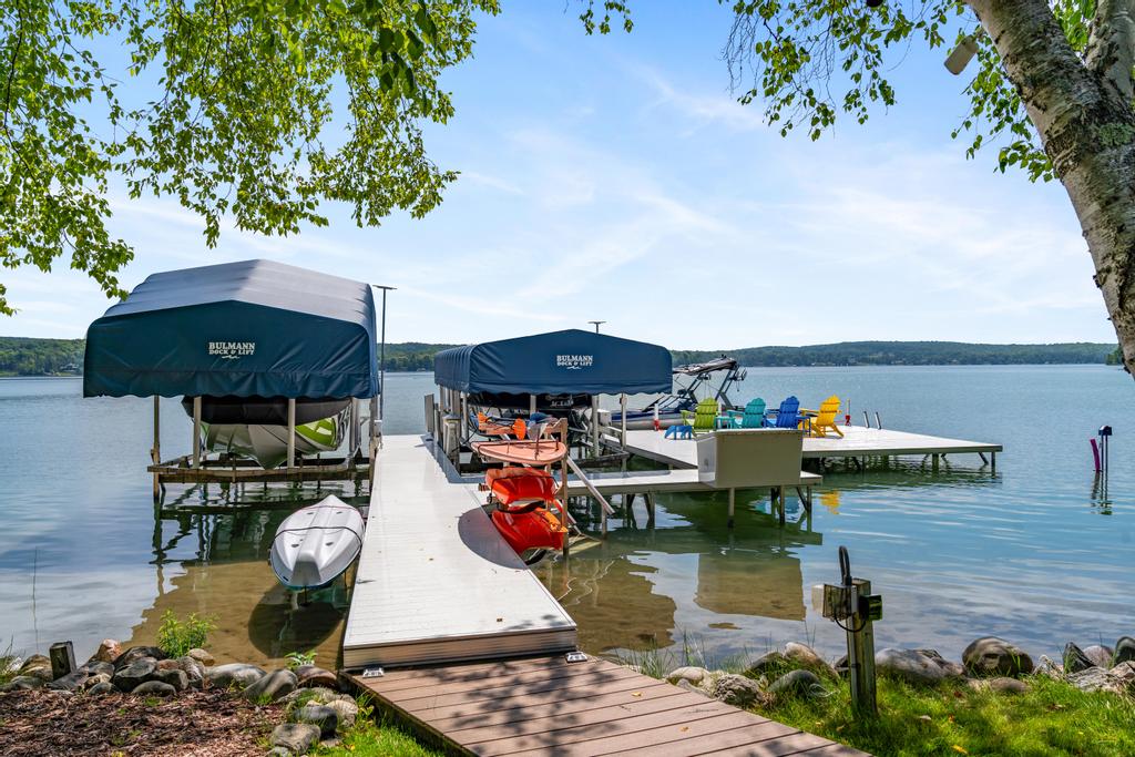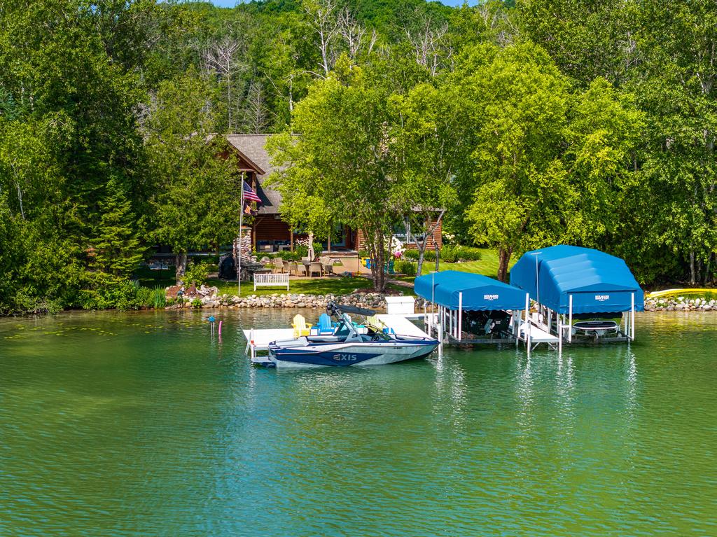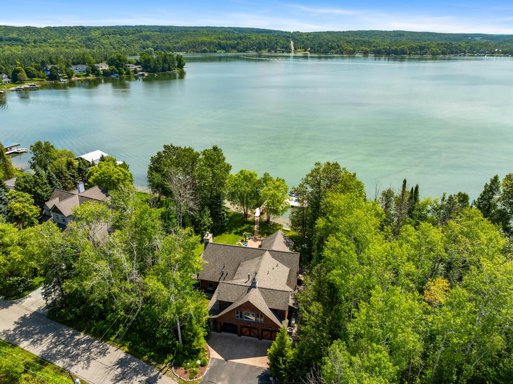 Situated on the North Arm of Walloon Lake, this lake home is perfect for larger family groups. This home sleeps a total of 16 people and has a modern, but welcoming feel. The spacious backyard is newly designed with plenty of seating and a nice, level lawn that leads out to the lake. The property is secluded by surrounding trees to enjoy the tranquility and privacy that you may seek on your lakefront getaway. The lake bottom is shallow and sandy and features 100 feet of frontage.