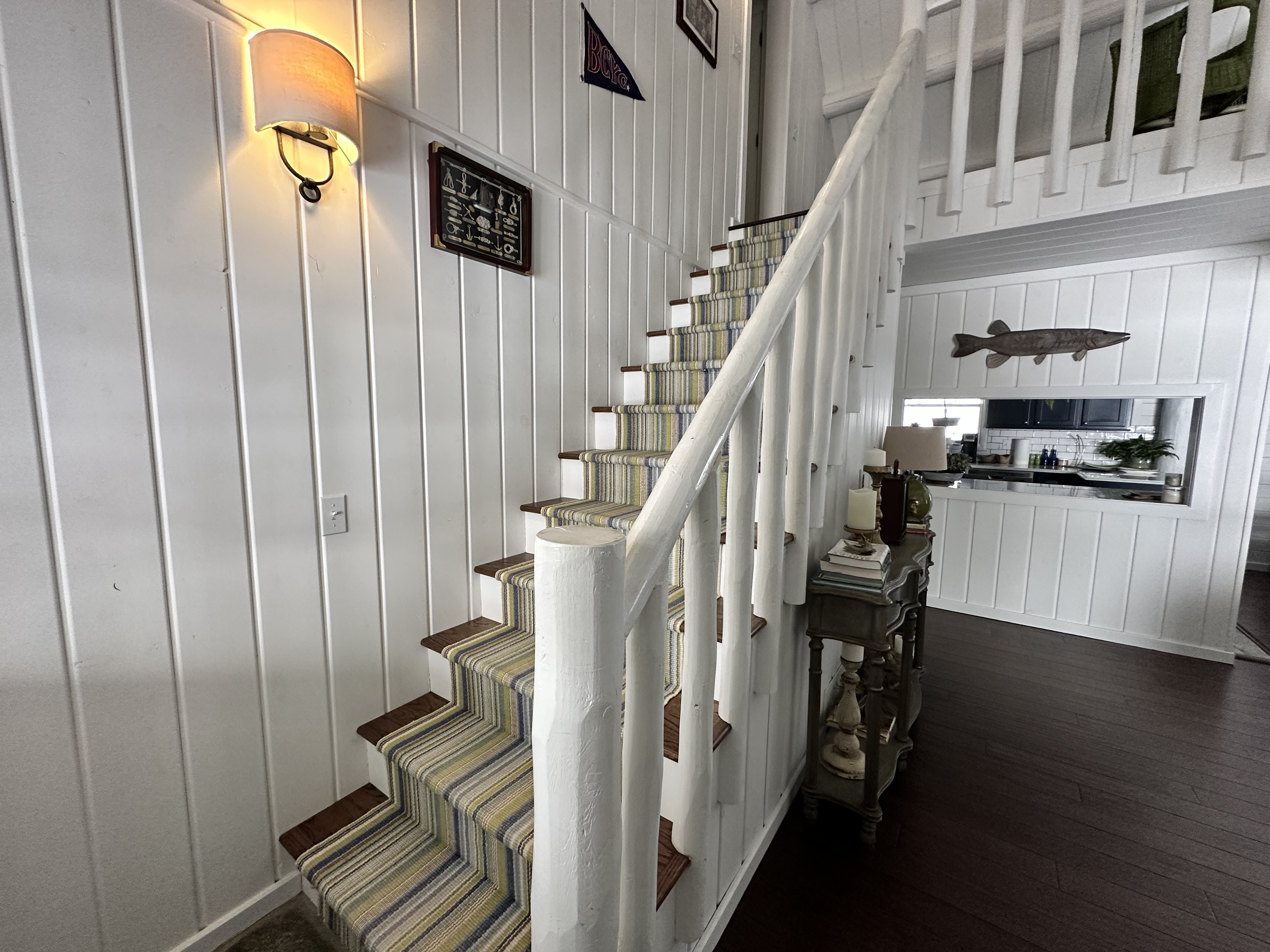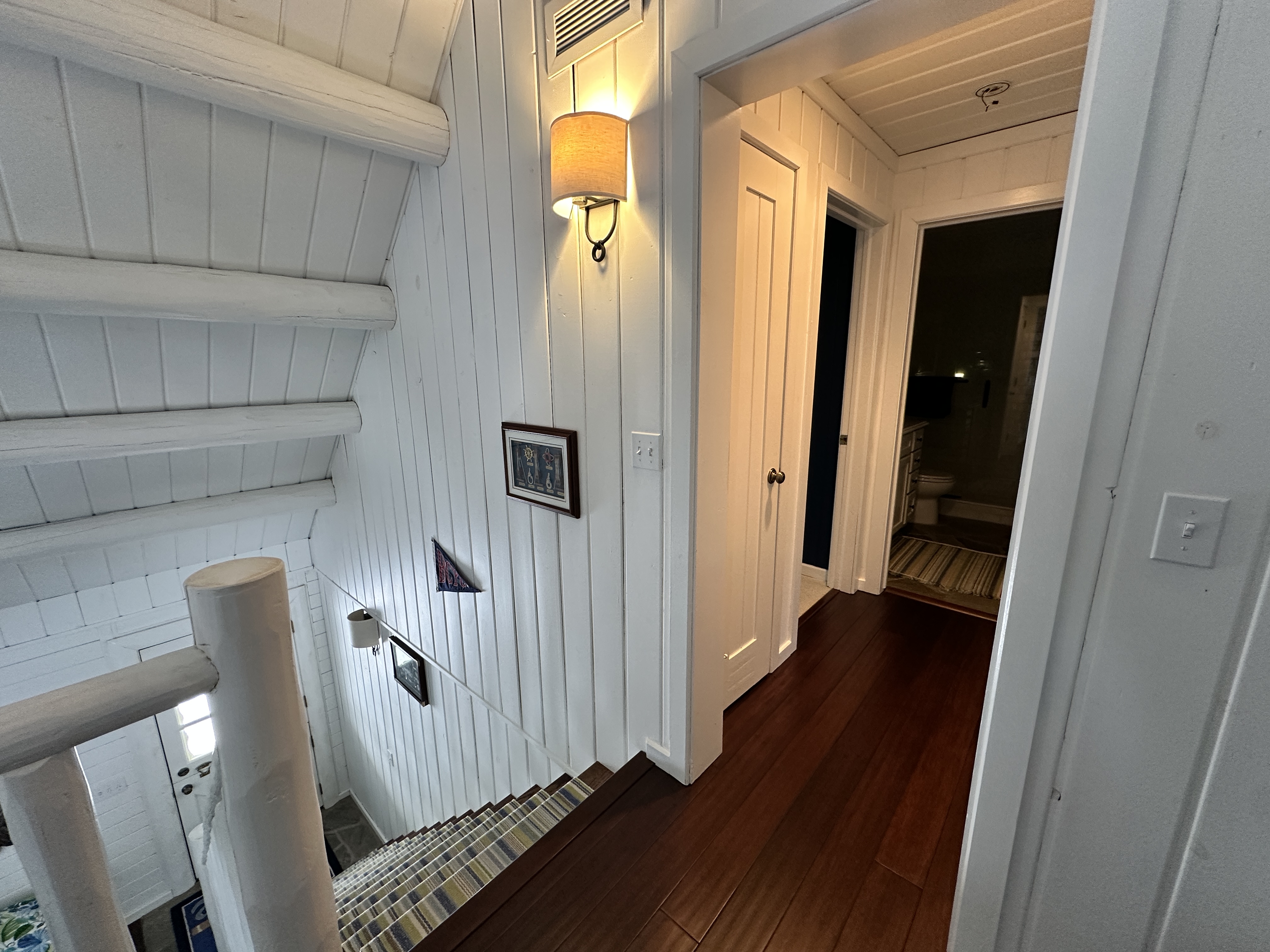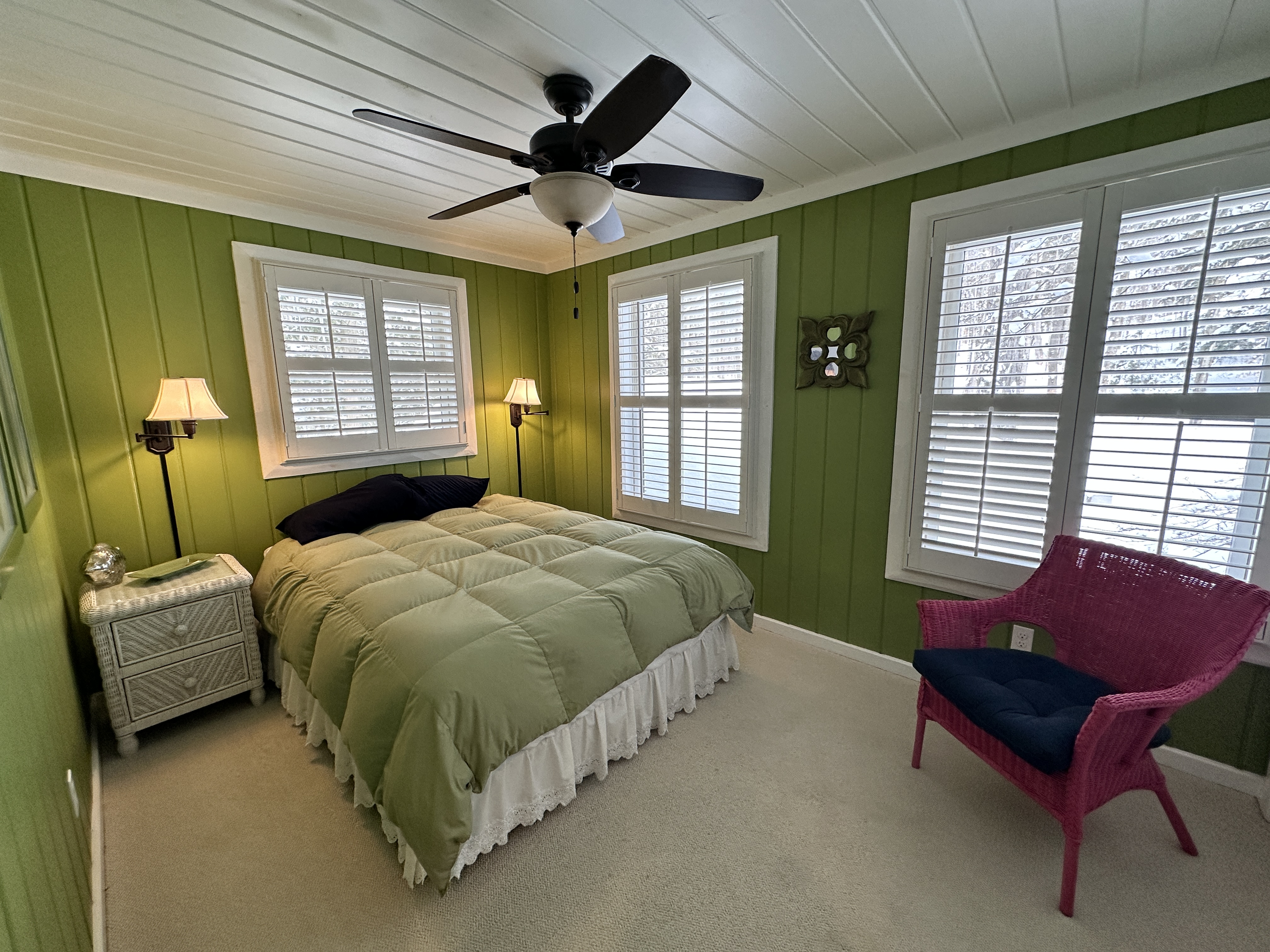 This home features a bright and comfortable living room with large windows allowing plenty of natural light. Flowing from the living room is the wonderfully updated and fully equipped kitchen that has everything you need on your vacation. Off of the living room is the den, giving everyone another space to relax after a day on the water. The main-floor primary bedroom includes an en suite bathroom with a shower and a king bed; there is a half bathroom downstairs as well. Upstairs is a loft area with a twin bed (not private) and down the hallway is two more bedrooms- one with a queen bed and the other with two twins and a full bathroom in-between making it a great layout for smaller groups or families.