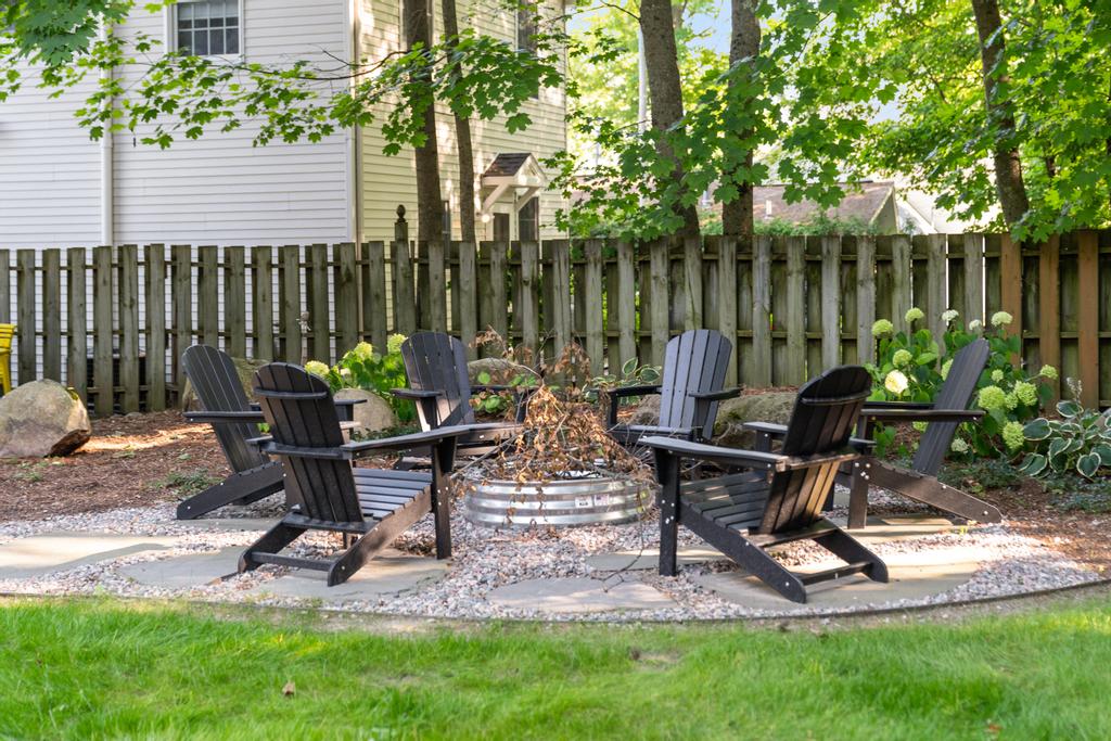 This house does have a boat slip with a dock that's just down the street. The house has a spacious, private outdoor space that has a gas grill, outdoor dining area that seats 6 and a fire pit area with 6 Adirondack chairs. There is a nice sized lawn area that is perfect for yard games along with a couple other benches for seating. An outdoor shower completes the backyard space, which is the perfect spot to rinse off after a long day at the beach.